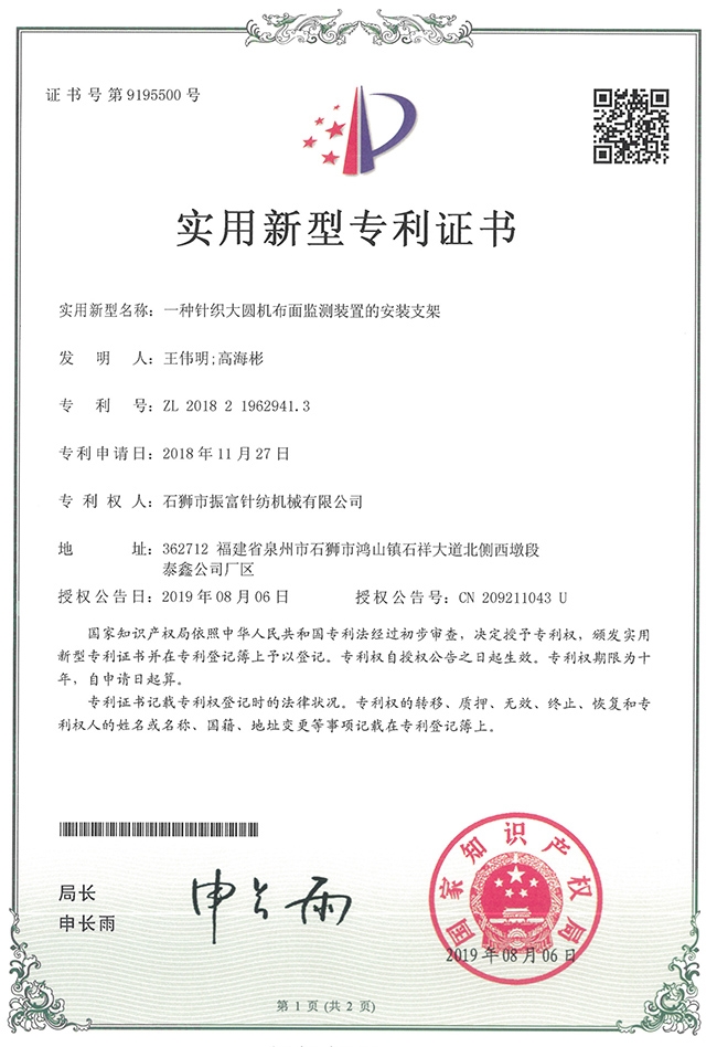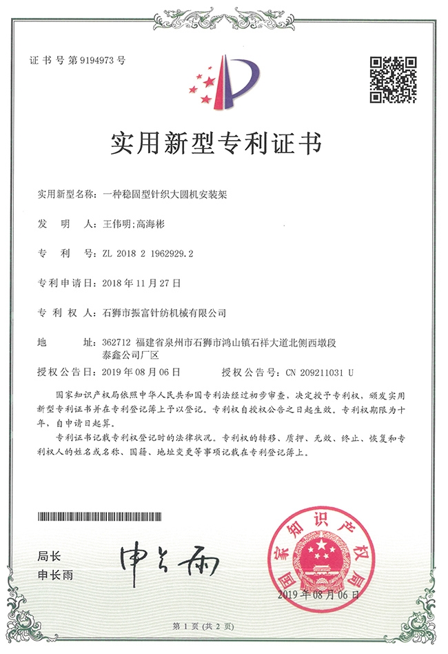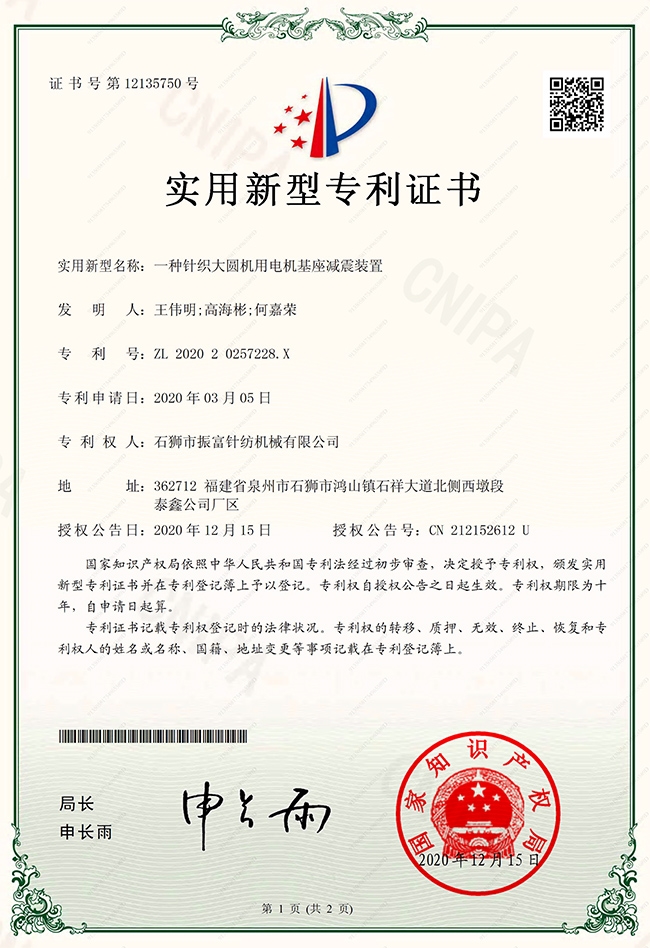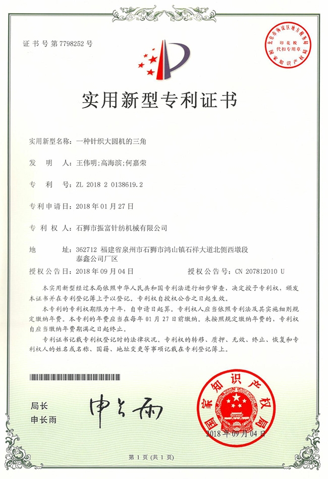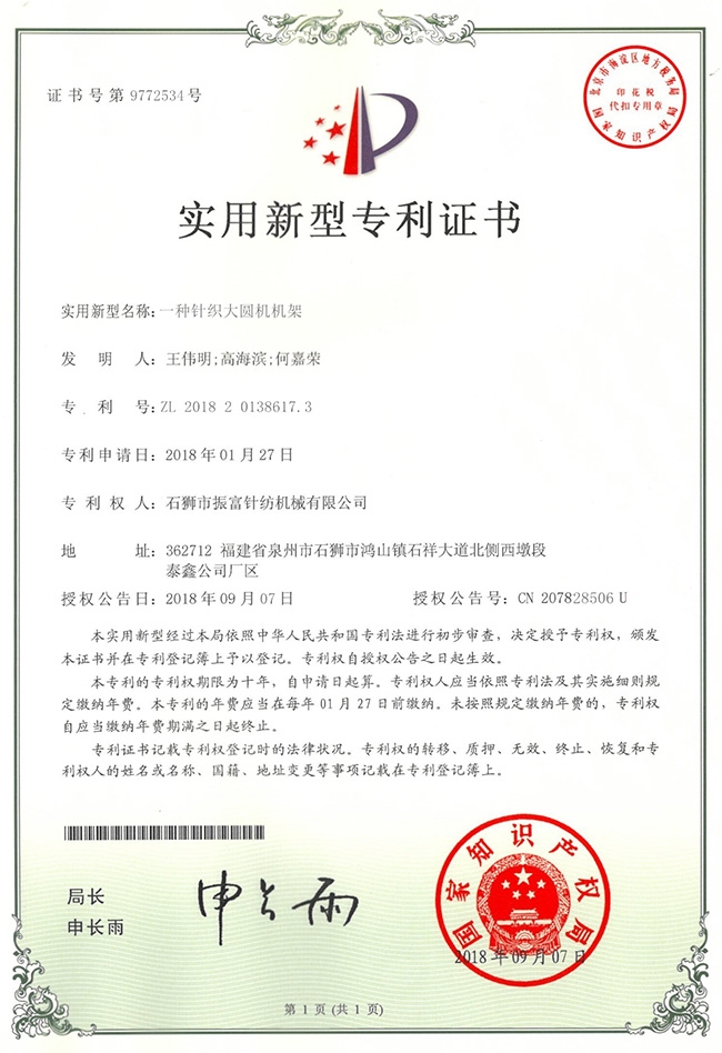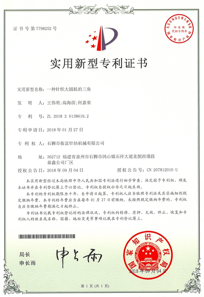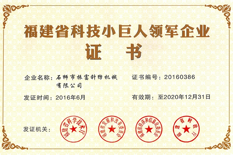石獅市振富針紡機械有限公司成立于2003年11月03日,專業(yè)從事緯編針織大圓機設(shè)計及制造的研發(fā)型公司,企業(yè)具備雄厚的產(chǎn)品研發(fā)和制造能力。自有廠房并配備了研發(fā)專用實驗室,每年研發(fā)投入數(shù)百萬元,現(xiàn)有發(fā)明專利兩項,實用新型專利總計七十余項,真正實現(xiàn)研發(fā)與生產(chǎn)相結(jié)合,將技術(shù)成果轉(zhuǎn)換并應(yīng)用到實踐中來;獲得“國家高新技術(shù)企業(yè)”、“科技小巨人領(lǐng)軍企業(yè)”、“省科技型中小企業(yè)”,“金牌設(shè)備供應(yīng)商”等殊榮。