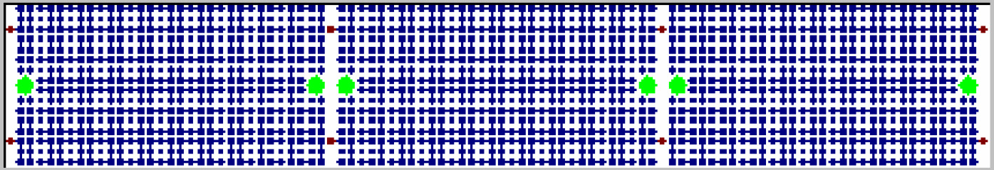 1400 口提花機(jī)機(jī)一塊紋板孔位分布如下:分三段,共有 31+32+31=94 行, 每行 16 列(零針行 6×2=12 行,每行只有 14 孔)。 總孔位=(94-12)×16+12×14=1480 孔。