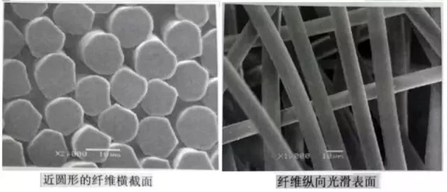纖維內(nèi)外層結(jié)構(gòu)較均勻,纖維橫截面的皮芯層結(jié)構(gòu)沒(méi)有普通粘膠纖維明顯,截面形態(tài)趨于圓形或腰圓形,縱向較光滑,濕態(tài)下有較高強(qiáng)度和模量,吸濕性能優(yōu)異。