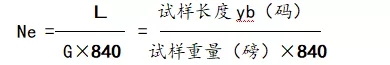 1)英制支數(shù):在公定回潮率(9.89%)時(shí),以1磅重量中的有幾個(gè)840碼的長(zhǎng)度數(shù)來(lái)表示紗線粗細(xì)程度:(在公定回潮率9.89%時(shí),一磅重的樣紗線所是有的長(zhǎng)度的840碼的倍數(shù))