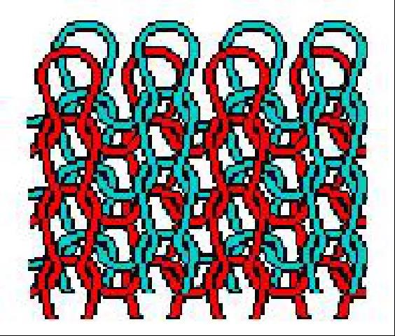 俗稱棉毛組織,由兩個羅紋組織彼此復合而成的雙面緯編組織,在一個羅紋組織線圈縱行之間配置了另一個羅紋組織的線圈縱行。