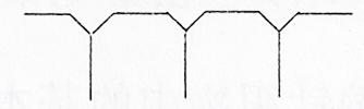 2、集圈:織針沒(méi)有升到最高點(diǎn),只升高到中間位置,舊線圈沒(méi)有退出針鉤就有新紗線墊在針鉤內(nèi),使針鉤中有兩根紗線或兩根以上紗線,一直到正常退圈時(shí)一起退下。表示見(jiàn)下圖
