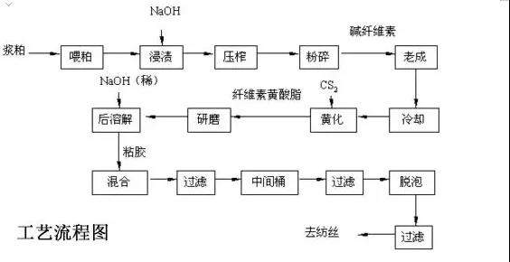 制備方法將植物纖維素經(jīng)堿化而成堿纖維素,再與二硫化碳作用生成纖維素黃原酸酯, 溶解于稀堿液內(nèi)得到的粘稠溶液稱粘膠,粘膠經(jīng)濕法紡絲和一系列處理工序后即成粘膠纖維。