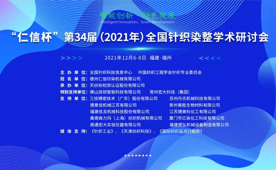 由全國針織科技信息中心和中國紡織工程學會針織專業(yè)委員會聯合主辦,天紡標檢測認證股份有限公司承辦,德州仁信印染機械有限公司冠名的“仁信杯第34屆(2021年)全國針織染整學術研討會”于2021年12月6-8日在福建省福州市圓滿落下帷幕。