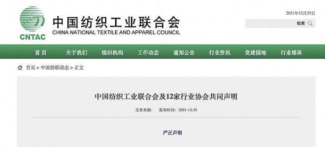 5.我們?cè)诖撕粲趺绹?guó)方面正視中國(guó)政府、產(chǎn)業(yè)界和消費(fèi)者嚴(yán)正立場(chǎng),盡快糾正錯(cuò)誤的立法和行政措施。同時(shí),國(guó)際品牌和中國(guó)紡織業(yè)是利益和命運(yùn)共同體,我們呼吁所有國(guó)際品牌尊重新疆維吾爾自治區(qū)和中國(guó)紡織產(chǎn)業(yè)界的正當(dāng)權(quán)益,尊重全球70多億消費(fèi)者的自由選擇權(quán)利,抵制明顯惡意和不公的貿(mào)易霸凌,避免商業(yè)問(wèn)題政治化,不要成為美國(guó)反華勢(shì)力的犧牲品。我們將視事態(tài)的進(jìn)一步發(fā)展,支持中國(guó)政府采取相應(yīng)的一切必要反制舉措,維護(hù)新疆利益和產(chǎn)業(yè)利益。