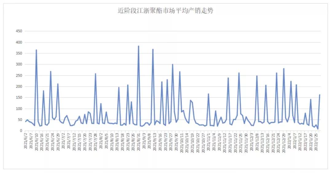 從聚酯產(chǎn)銷來看,春節(jié)前,聚酯工廠產(chǎn)銷迎來了較大的波動(dòng)。在國(guó)際油價(jià)和聚酯原料上漲的利好刺激下,雖說聚酯廠家近期報(bào)價(jià)重心仍是以穩(wěn)為主,但從產(chǎn)銷走勢(shì)圖中可以看出,春節(jié)前聚酯市場(chǎng)整體產(chǎn)銷卻是實(shí)打?qū)嵉纳仙?/span>