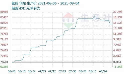 今年以來,紡織服裝原料幾乎是全線開啟上漲模式。棉紗、短纖等紡織原料價格一路上漲,氨綸價格更是比年初翻了好幾倍,目前價格高位震蕩,產(chǎn)品仍然供不應(yīng)求。今年6月下旬以來,棉花開啟新一輪趨勢性上漲,至今累計漲幅超15%。