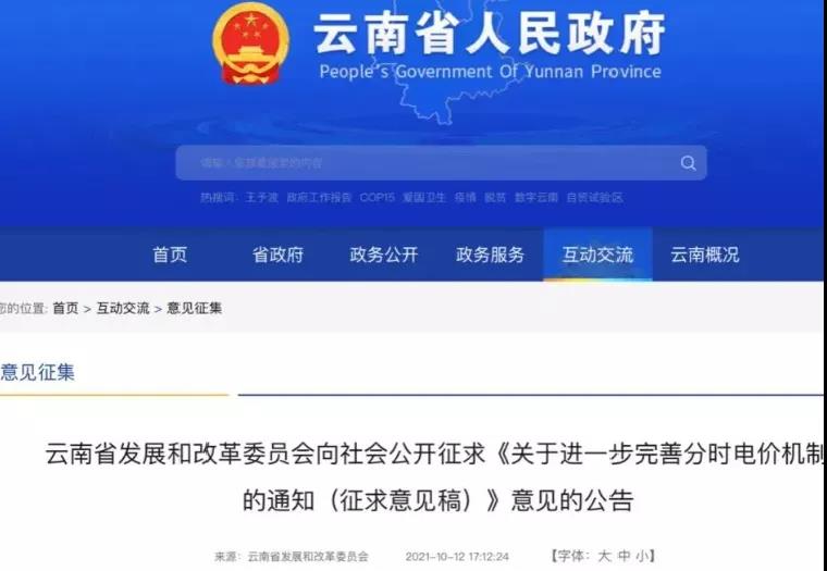 近日,云南發(fā)改委發(fā)布公告《關于進一步完善分時電價機制的通知(征求意見稿)》。