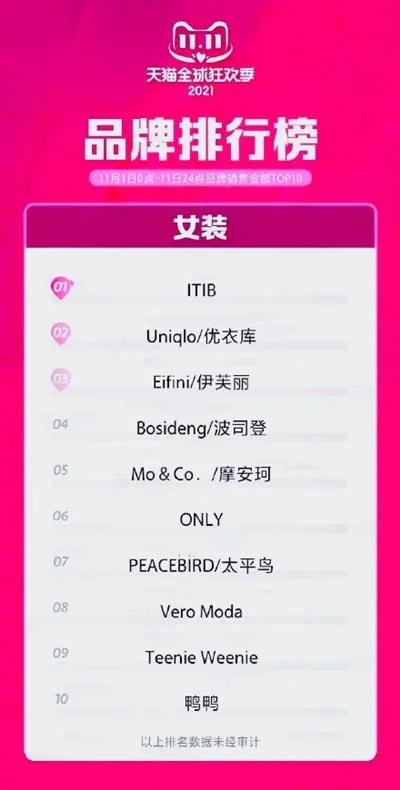 而現(xiàn)在,不僅韓都衣舍謀求IPO上市失敗,MG小象更是準備閉店。到了今年雙十一的女裝排名榜單上,那些曾經消費者耳熟能詳?shù)木€上品牌更是全部消失,取而代之的是線下反攻成功的國際大牌,和一些新出現(xiàn)的潮流品牌。