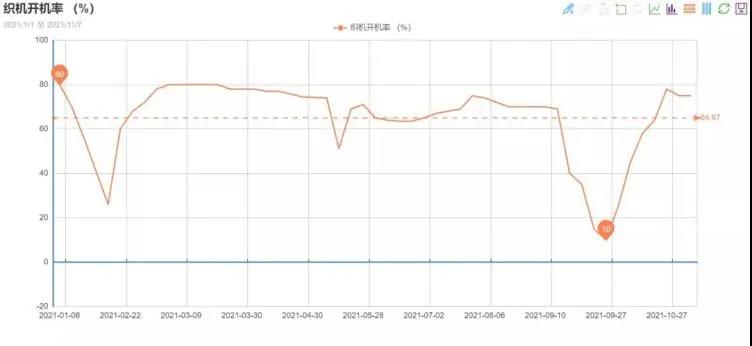 部分地區(qū)目前限電暫時(shí)取消了,本以為訂單會(huì)正常一些,但是紡織老板們卻言:“更少了!”雖然大部分企業(yè)能夠滿開(kāi),也有一些機(jī)器較多的廠家開(kāi)7成以上,但本周盛澤地區(qū)織造開(kāi)工率下滑至75%左右。